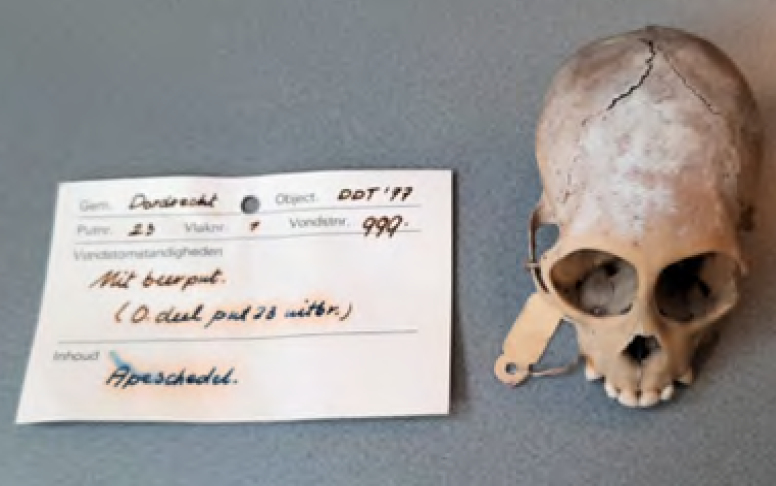 ![]() Schedel Kapucijneraapje, op achtererf gevonden in 1977